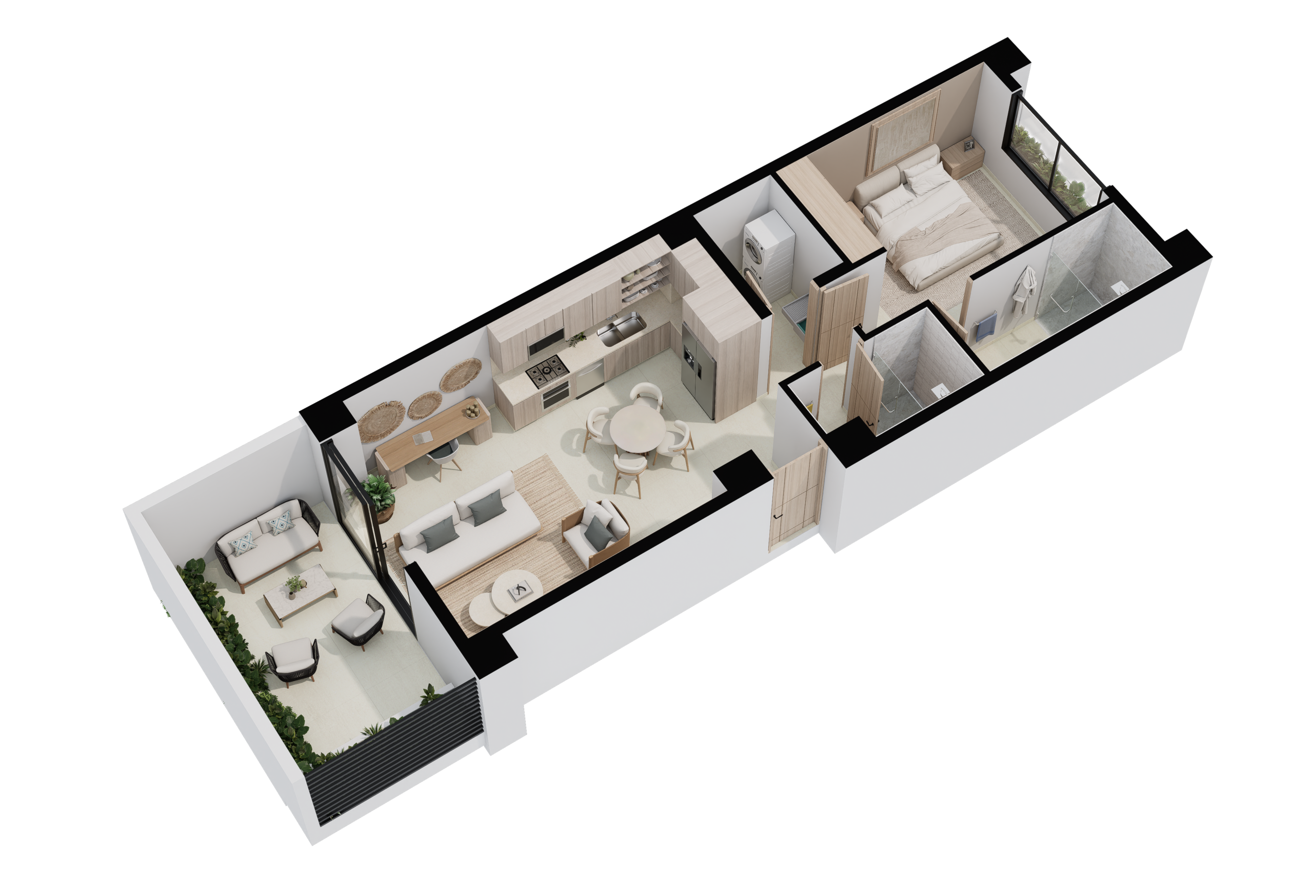Four distinct layouts, designed with the same clear intention: open-concept living, natural light, and private terraces that extend your space outdoors
